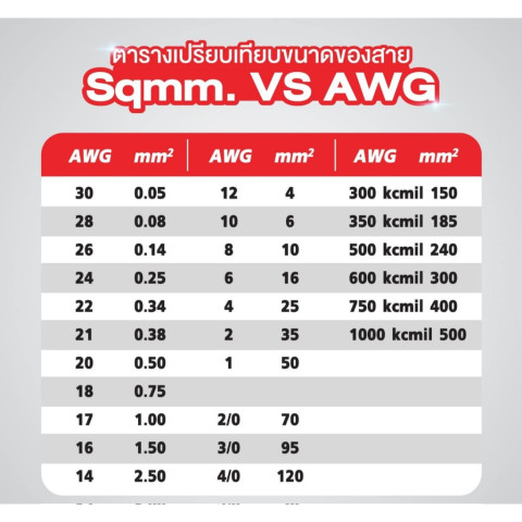 โครงสร้างและขนาดสาย (รุ่นนี้)