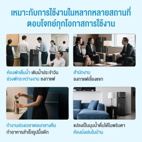 ด้วยระบบประหยัดพลังงานและการทำงานที่เงียบเป็นพิเศษ คุณสามารถวางตู้กดน้ำเครื่องนี้ในห้องทำงาน ห้องนั่งเล่น หรือมุมประชุมได้โดยไม่รบกวนสมาธิ มาพร้อมดีไซน์เรียบหรู ใช้งานง่าย ปลอดภัย เหมาะกับทุกสไตล์การตกแต่ง