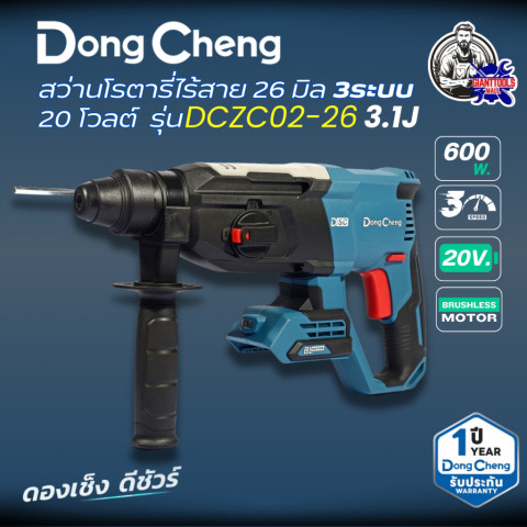 ด้วยพลัง 20 โวลต์ มอเตอร์ไร้แปรงถ่าน และแรงกระแทก 3.1 จูล DONGCHENG DCZC02-26 TYPE Z คือสว่านโรตารี่ 3 ระบบที่พร้อมยกระดับทุกงานเจาะและงานสกัดให้เร็วขึ้น ปลอดภัยขึ้น และมืออาชีพยิ่งกว่าเดิม เหมาะอย่างยิ่งสำหรับผู้ใช้ที่มีระบบแบตเตอรี่ 20V ของดองเช็งอยู่แล้ว และต้องการเพิ่มสว่านโรตารี่ตัวใหญ่ไว้เสริมทัพในงานหน้างานจริง