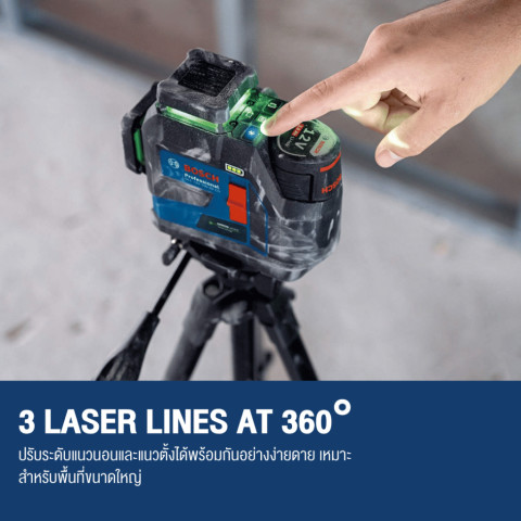 ลำแสงเลเซอร์ 3 เส้น แบบ 360° ครอบคลุมรอบทิศทาง ช่วยลดการขยับย้ายเครื่องมือบ่อยครั้ง