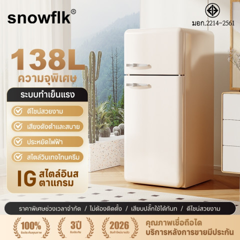 Snowflk🔥ตู้แช่แข็งเดี่ยว 138L วินเทจสีครีม ตู้เย็นดีไซน์สวยในสไตล์วินเทจ ที่ให้ทั้งฟังก์ชันการใช้งานครบครันและความงามในการตกแต่งบ้าน เหมาะอย่างยิ่งสำหรับเก็บนมแม่ อาหารแช่แข็ง และวัตถุดิบต่างๆ ในพื้นที่กะทัดรัดของคอนโด หอพัก บ้านเช่า หรือครอบครัวขนาดเล็ก ในราคาสุดคุ้มเพียง 5,299 บาท