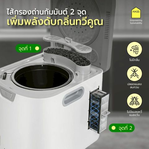 ระบบให้ความร้อน + บดละเอียด เปลี่ยนเศษอาหารเป็นผงแห้ง ลดความชื้น ลดกลิ่นรบกวน