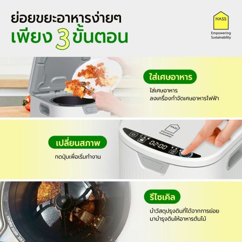 ลดปริมาณเศษอาหารได้สูงสุดถึง 90% ช่วยลดภาระการทิ้งขยะและกลิ่นไม่พึงประสงค์