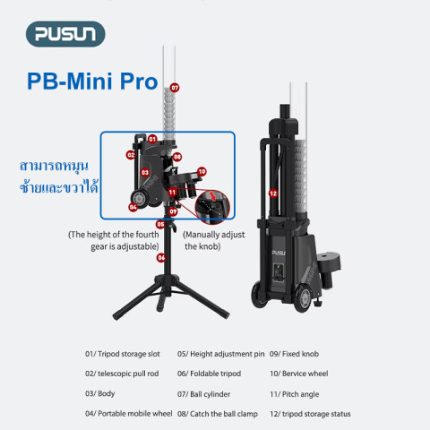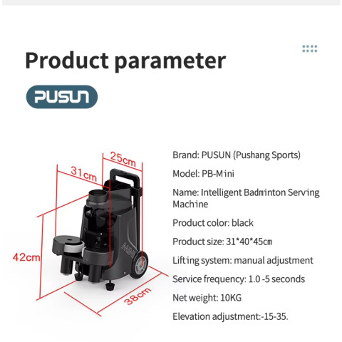 PUSUN PB-MINI Pro Badminton Ball Machine เครื่องยิง/ตีลูกแบดมินตันอัจฉริยะพร้อม APP Remote Control ช่วยยกระดับการซ้อมให้เหมือนมีโค้ชส่วนตัว ปรับความเร็ว ความถี่ มุมเงย และรูปแบบการยิงได้หลากหลาย เหมาะทั้งผู้เริ่มต้นจนถึงนักกีฬาที่ต้องการซ้อมเฉพาะจุดอย่างจริงจัง