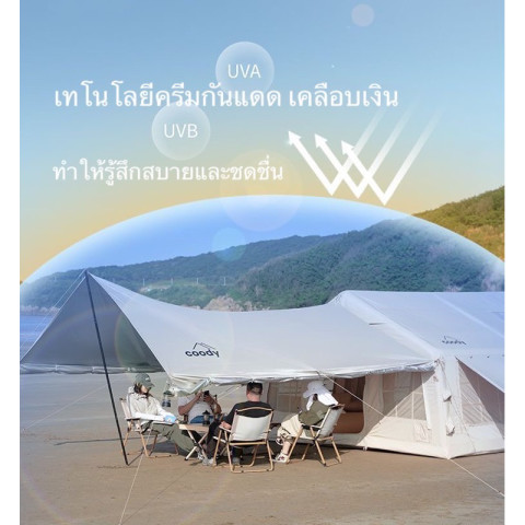 🔥รุ่นอัพเกรด🔥 Coody เต็นท์สูบลม รุ่น 13.68 เต็นท์บ้านขนาดใหญ่แบบ 2 ห้องนอน + 1 ห้องนั่งเล่น โทนสีเบจ สไตล์แคมป์หรู กางง่ายด้วยระบบเสาลม เหมาะสำหรับครอบครัวหรือกลุ่มเพื่อนที่ต้องการพื้นที่เป็นสัดส่วน พักสบาย พร้อมผ้าหนากันฝนและระบายอากาศได้ดี