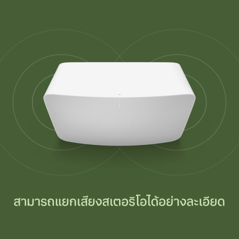 ยกระดับทุกเพลย์ลิสต์ให้พิเศษขึ้นด้วย Sonos Five—ลำโพงที่รวมความง่ายของระบบไร้สาย ความยืดหยุ่นในการเชื่อมต่อ และพลังเสียงที่พร้อมเติมเต็มทุกมุมบ้านในเครื่องเดียว