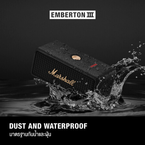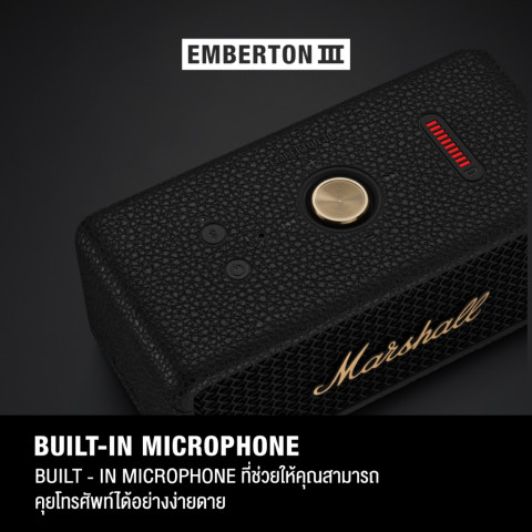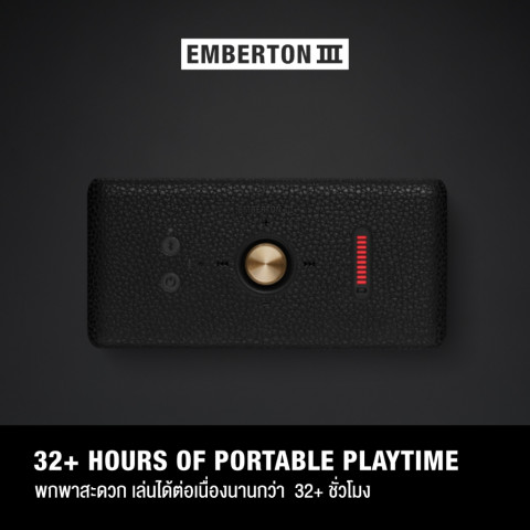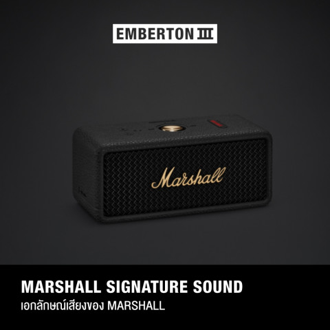MARSHALL Emberton III Black and Brass ลำโพงพกพา Bluetooth ดีไซน์ไอคอนิกโทน Black & Brass ให้เสียงเอกลักษณ์แบบ Marshall ที่คมชัด ทรงพลัง และบาลานซ์ดี พร้อมพกพาไปได้ทุกที่ด้วยความอึดทนต่อสภาพแวดล้อม และแบตเตอรี่ที่ฟังยาวต่อเนื่องได้แบบจุใจ