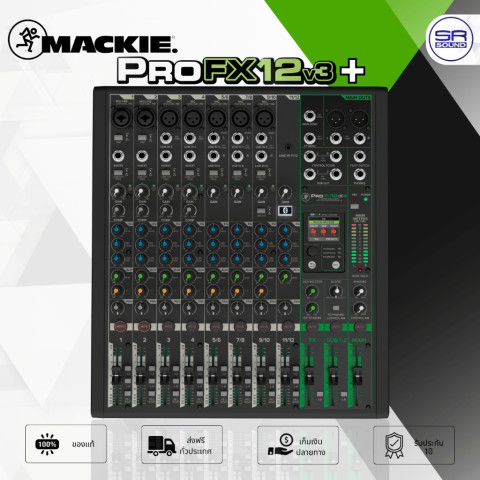 Mackie ProFX12v3+ มิกเซอร์อนาล็อก 12 แชนแนลที่ให้โทนเสียงเป็นเอกลักษณ์ของ MACKIE—ย่านกลางใส หนานุ่ม ฟังแล้วมีมิติ เหมาะทั้งงานไลฟ์ งานซ้อม วงดนตรี โบสถ์ ห้องเรียน ไปจนถึงสตรีม/พอดแคสต์ ด้วยปรีแอมป์ไมค์ ONYX™ เกนสูงสุด 60dB และเอฟเฟกต์คุณภาพสูงจาก GiG FX+ Effect Engine ปรับได้บนตัวเครื่องผ่าน หน้าจอ LCD ใช้งานง่ายและเป็นมืออาชีพในเครื่องเดียว