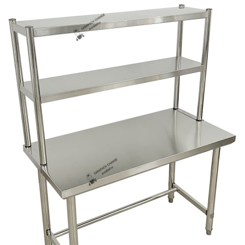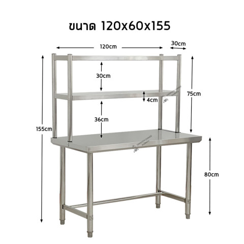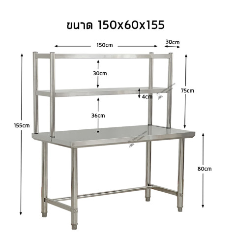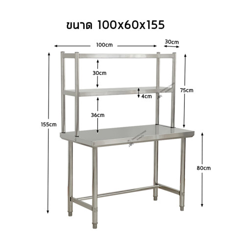 โต๊ะสแตนเลส พร้อมชั้นวาง เกรด 201 โต๊ะทำงานสแตนเลสอเนกประสงค์ ดีไซน์เรียบสะอาด เหมาะทั้งงานครัว ร้านอาหาร พื้นที่เตรียมอาหาร หรือมุมแพ็กของในบ้าน/โกดัง มาพร้อมชั้นวางช่วยเพิ่มพื้นที่จัดเก็บ ให้ใช้งานเป็นระเบียบยิ่งขึ้น ในราคา 6,288.00 บาท