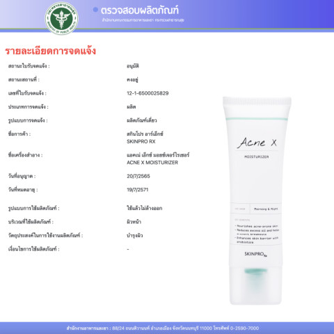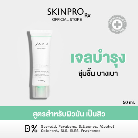 SKINPRO Rx Acne X Moisturizer มอยซ์เจอร์ไรเซอร์สูตรดูแลผิวมัน/เป็นสิว ขนาด 50 ml ช่วยเติมความชุ่มชื้นแบบพอดีผิว คุมมัน ลดโอกาสการเกิดสิวซ้ำ พร้อมเสริมเกราะป้องกันผิวให้แข็งแรง ผิวจึงดูเรียบเนียน สุขภาพดี ไม่มันเยิ้มระหว่างวัน