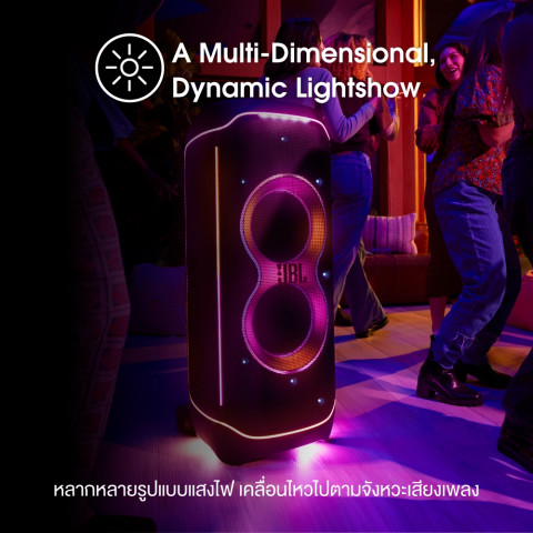 ภายในติดตั้งไดรเวอร์คุณภาพสูงแบบจัดเต็ม ให้เสียงครบทุกย่านตั้งแต่เบสลึกหนักแน่น เสียงกลางคมชัด ไปจนถึงเสียงแหลมใสมีรายละเอียด และยังมาพร้อม Multi-dimensional light show ที่เคลื่อนไหวตามจังหวะเพลง เพิ่มความมันให้ปาร์ตี้เด่นสะดุดตา สามารถปรับแต่งแสง สี และโหมดต่าง ๆ ได้ผ่านแอป JBL One