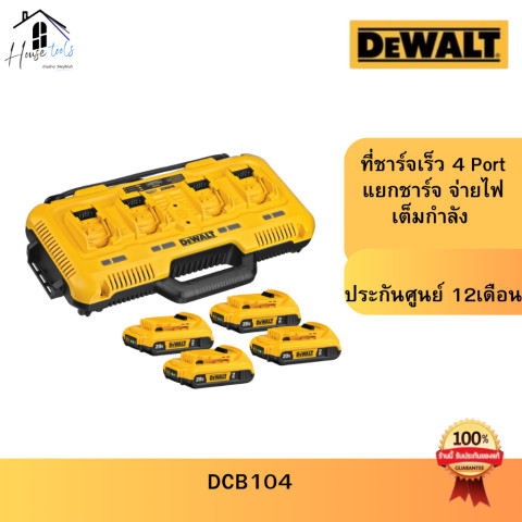 DEWALT รุ่น DCB104-QW แท่นชาร์จแบตเตอรี่ 4 ช่องแบบชาร์จไว สำหรับงานช่างมืออาชีพและผู้ใช้งานที่มีแบตหลายก้อน ช่วยลดเวลารอคอยด้วยการชาร์จได้พร้อมกันถึง 4 ก้อน พร้อมจ่ายกระแสแยกอิสระในแต่ละช่อง ให้การชาร์จมีประสิทธิภาพและเหมาะกับแบตเตอรี่แต่ละก้อนโดยอัตโนมัติ รองรับแบตเตอรี่ DEWALT ครอบคลุมตั้งแต่ 12V Max ไปจนถึง 60V Max ใช้งานคล่องตัวทั้งในไซต์งานและเวิร์กช็อป