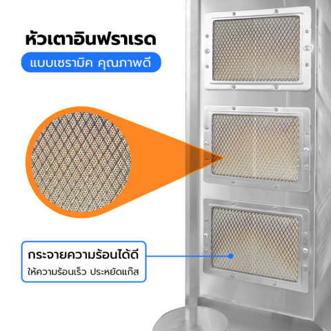 แกนหมุน 360° ด้วยมอเตอร์ 220V/50Hz ย่างสุกสม่ำเสมอ ลดจุดไหม้