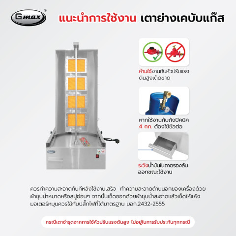Gmax เตาย่างเคบับแก๊ส Shawarma Gas Grill รุ่น SK-Series (สเปค: SK-704) คือเตาเคบับสำหรับร้านอาหาร/ฟู้ดทรัคที่ต้องการความร้อนสม่ำเสมอ ย่างสวย กลิ่นควันน้อย พร้อมระบบแกนหมุนมอเตอร์ช่วยให้เนื้อสุกทั่วถึงทุกด้าน เหมาะทั้งชอว์ม่า เคบับ ไก่ย่างเสียบแกน และเมนูย่างแนวตั้งอื่นๆ