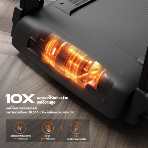 อัปเกรดการวิ่งให้ “นุ่ม เงียบ ลื่นไหล” ด้วยเทคโนโลยีที่ปรับเทียบตามมาตรฐานการยศาสตร์เยอรมัน DIN EN ISO 9241 ช่วยลดแรงกระทำต่อร่างกายขณะวิ่ง พร้อมมอเตอร์ไร้แปรงกำลังสูงที่ทนทานเหนือมาตรฐานอุตสาหกรรม (อายุการใช้งานต่อเนื่องได้ยาวนาน เหมาะสำหรับใช้งานประจำทุกวัน)