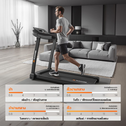 RUNWISE ลู่วิ่งไฟฟ้า มอเตอร์ไร้แปรงถ่าน รุ่น R7 ลู่วิ่งดีไซน์พรีเมียมสีขาว-ดำ พร้อมสายพานกว้างพิเศษ 59 ซม. และปรับความเร็วได้ถึง 14 ระดับ ตอบโจทย์ทั้งเดินฟื้นฟู ออกกำลังเผาผลาญ ไปจนถึงซ้อมวิ่งจริงที่บ้านได้อย่างมั่นใจ ในราคา 7,999.00 บาท