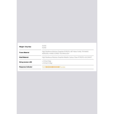 แรงตึงเอ็นที่แนะนำ: สูงสุด ≦ 33 lbs (15 kg) / ≦ 32 lbs (14.5 kg) (ขึ้นอยู่กับน้ำหนักไม้)