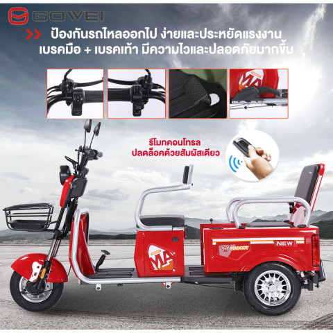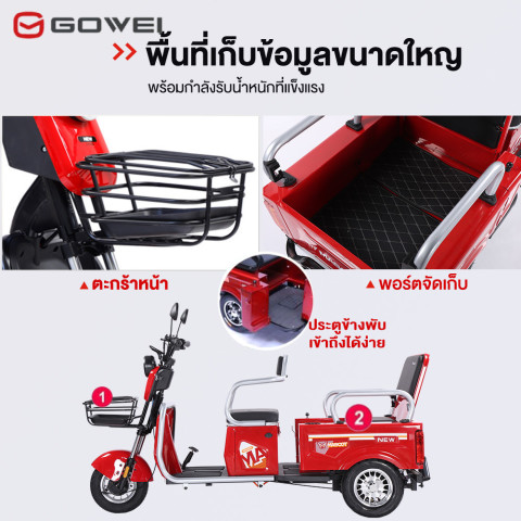[ติดตั้งแล้ว] GOWEI รถสามล้อไฟฟ้า 1000W 60V20Ah รถสามล้อไฟฟ้าสำหรับผู้ใหญ่ นั่งได้ถึง 3 คน พร้อมพื้นที่บรรทุกของขนาดใหญ่ เหมาะทั้งใช้งานในครอบครัว รับ-ส่งของ หรือผู้สูงอายุที่ต้องการรถขับขี่มั่นคง ขับง่าย พร้อมระบบเดินหน้า-ถอยหลัง และปรับความเร็วได้ 3 ระดับ