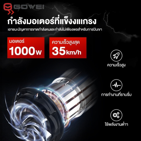 มอเตอร์แรง 1000W ขับขึ้นทางชันได้ดี (รองรับทางลาดชันได้ถึง 50°)