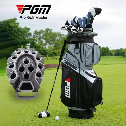 Pgm Golf Bag Multi-Function รุ่น QB134 กระเป๋ากอล์ฟดีไซน์พรีเมียมสำหรับนักกอล์ฟที่ต้องการความเป็นระเบียบ ความจุใหญ่ และความคล่องตัวในการเดินทาง มาพร้อมโครงสร้างกันกระแทก ลดการเสียดสีของไม้ ช่วยให้ทุกทริปซ้อมหรือออกรอบมั่นใจยิ่งขึ้น ในโทนสีดำเทาสุภาพ ดูโปรระดับทัวร์