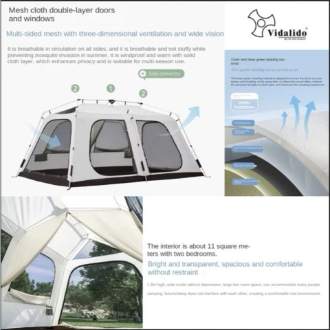 🔥พร้อมส่ง🔥 Vidalido Vicore Auto Instant Tent Size M & L เต็นท์กางอัตโนมัติขนาดใหญ่สำหรับสายแคมป์ที่ต้องการความสะดวกสบาย กางง่าย โครงสร้างแข็งแรง ระบายอากาศรอบทิศทาง พร้อมวัสดุพรีเมี่ยมกันน้ำและกันแดด เหมาะทั้งทริปครอบครัวและกลุ่มเพื่อน รองรับ 4-8 คน โดยใช้เวลากางเต็นท์ ไม่ถึง 10 นาที