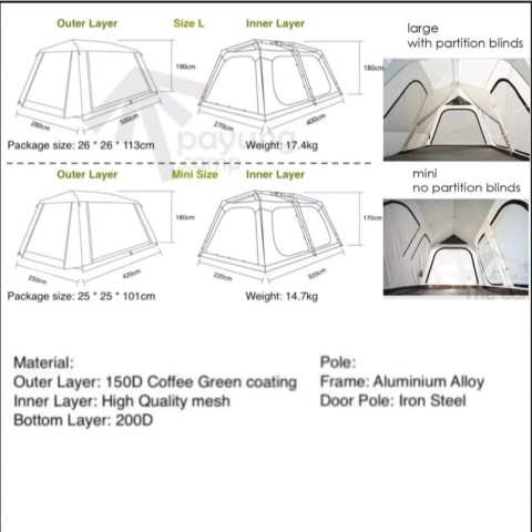 มีให้เลือก 2 ขนาด (เลือกให้เหมาะกับจำนวนคนและพื้นที่ตั้งแคมป์)