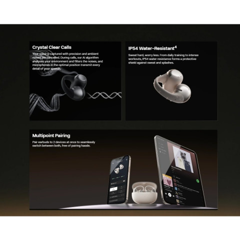 น้ำหนักเพียง 6.5 กรัม พร้อมโครงสร้าง JointArc (นิกเกิล-ไทเทเนียม) ช่วยให้หนีบหูได้พอดี ไม่หนัก ไม่หลุดง่าย เหมาะทั้งใส่ทำงาน เดินทาง หรือออกกำลังกายเสียงดีแบบ immersive