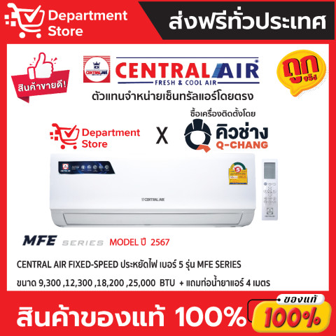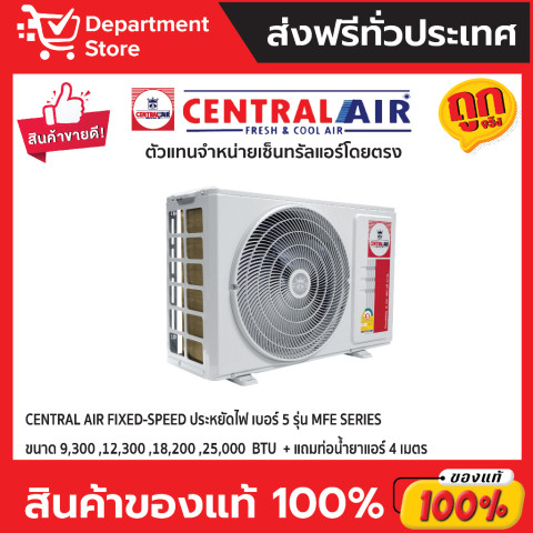 แอร์ผนัง CENTRAL AIR รุ่น MFE SERIES (Fixed Speed) เบอร์ 5 ตัวเลือกคุ้มค่าเพื่อบ้านเย็นสบาย ประหยัดไฟ ด้วยมาตรฐานประหยัดไฟเบอร์ 5 พร้อมเทคโนโลยีเคลือบคอยล์ GOLDEN FIN ช่วยทนการกัดกร่อนจากไอเค็ม/มลพิษ ยืดอายุการใช้งาน เหมาะทั้งบ้านพักอาศัยและพื้นที่ใช้งานทั่วไป