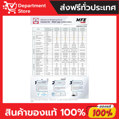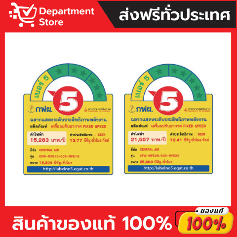 CFW-MFE18: 18,200 BTU / SEER 13.77 / ค่าไฟเฉลี่ย ~ 15,283 บาท/ปี
