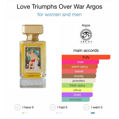 เติมเต็มลุคให้โดดเด่นด้วยกลิ่นที่ทั้งโรแมนติกและทรงพลัง—ARGOS LOVE TRIUMPHS OVER WAR คือคาแรกเตอร์ของคนที่เลือก “ความรัก” เป็นชัยชนะในทุกวัน