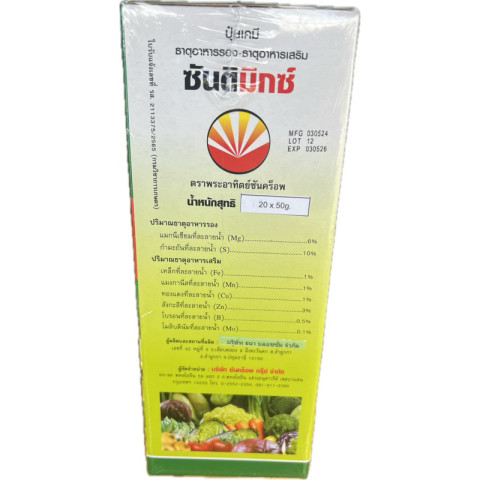 ✅ ซันติมิกซ์ (Suntimix) ขนาด 1 กก. จำนวน 12 กล่อง (ยกลัง) ธาตุอาหารรอง–ธาตุอาหารเสริมพืช สูตรเข้มข้น สำหรับฉีดพ่นเพิ่มความสมบูรณ์ให้พืช ช่วยกระตุ้นการสร้างตาดอก ฟื้นอาการขาดธาตุ เสริมการสังเคราะห์แสงและการสร้างอาหาร ทำให้พืชแข็งแรง ออกดอกติดผลดี ผลโต คุณภาพดี เหมาะกับพืชสวน ไม้ผล และพืชไร่หลากหลายชนิด