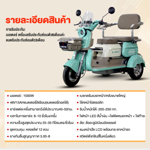 แบตเตอรี่: ลิเที่ยม 48V15Ah (ถอดแบตชาร์จได้)