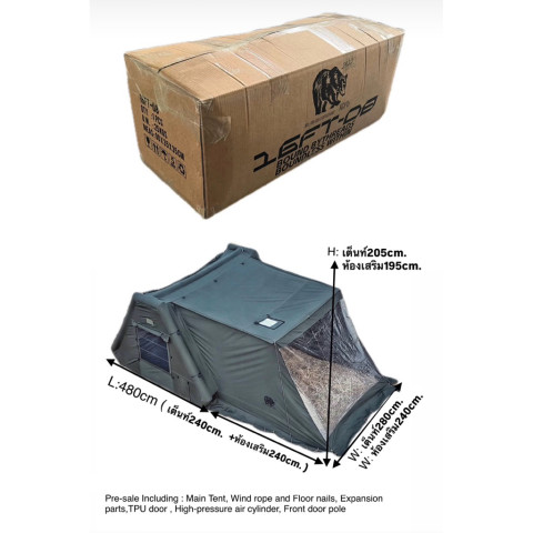 ประกัน 1 ปี🔥พร้อมส่งทันทีใน 24 ชม.🔥 16FT TANK08 เต็นท์เสาลม ครบชุดห้องเสริม+หน้าต่าง TPU ผ้าแคนวาส (มี 2 สี: เขียว/ครีม)