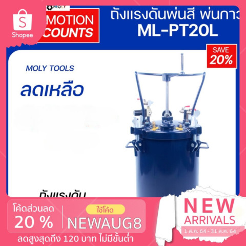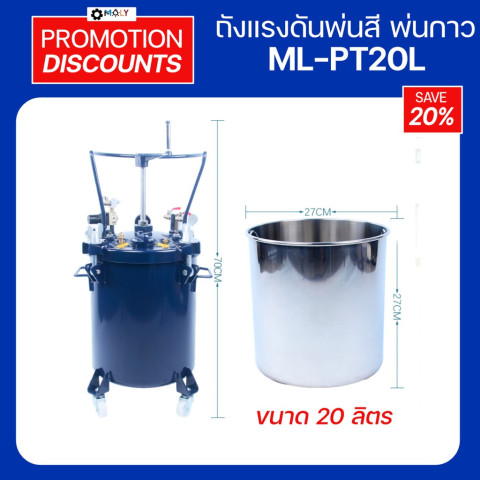MOLY TOOLS ถังแรงดันผสมสีและพ่นสี Pressure Tank ระบบ Manual Agitator 20L รุ่น ML-PT20L ราคา 9,900.00 บาท เหมาะสำหรับงานพ่นสีที่ต้องการปริมาณต่อเนื่อง ลดการเติมสีบ่อย และช่วยให้งานออกมาสม่ำเสมอ ด้วยระบบกวนสีแบบใช้มือ (Manual Agitator) ช่วยลดการตกตะกอนของสีระหว่างใช้งาน พร้อมชุดควบคุมแรงดันและทางต่ออุปกรณ์ครบสำหรับงานพ่นสีทั่วไป เช่น งานพ่นรถยนต์ งานไม้ งานเหล็ก พลาสติก แก้ว และงานชิ้นส่วนต่าง ๆ