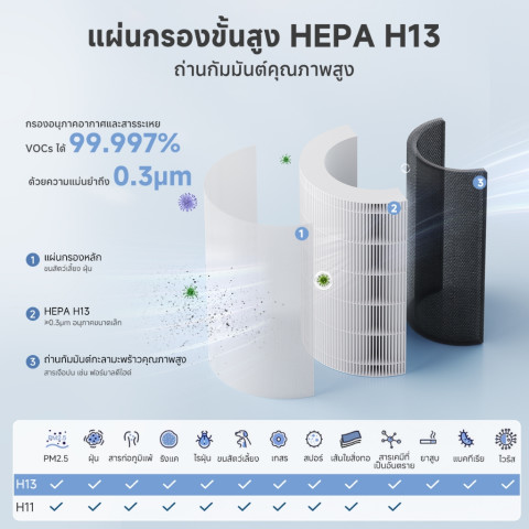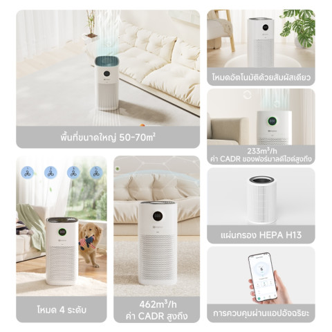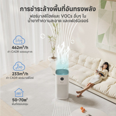 ฟอกอากาศแรง CADR 462m³/h ช่วยลดฝุ่นละอองขนาดเล็กและสิ่งปนเปื้อนในอากาศได้อย่างรวดเร็ว