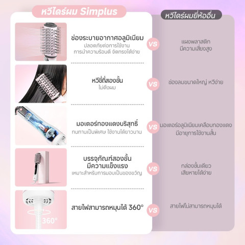 Simplus หวีไดร์ RFSH001 ผู้ช่วยจัดทรงที่ทำได้ครบในขั้นตอนเดียว เป่าผม+หวีจัดทรง+ยืดผม+ทำลอนนุ่มสลวย ให้คุณเป็นสไตลิสต์ส่วนตัวได้ทุกวัน ประหยัดเวลา เหมาะทั้งวันเร่งรีบและวันที่อยากจัดทรงให้เป๊ะเหมือนออกจากซาลอน