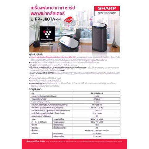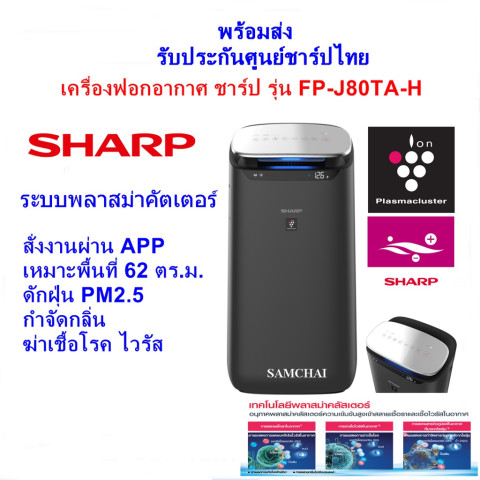 SHARP เครื่องฟอกอากาศ รุ่น FP-J80TA-H ตัวช่วยยกระดับอากาศสะอาดภายในบ้านด้วยเทคโนโลยี Plasmacluster เข้มข้นมากขึ้นกว่าปกติถึง 3 เท่า ครอบคลุมพื้นที่ห้องได้สูงสุด 62 ตร.ม. พร้อมระบบ IOT สั่งงานผ่านแอปได้ทุกที่ทุกเวลา ตอบโจทย์ทั้งบ้าน คอนโด หรือห้องนั่งเล่นขนาดใหญ่ ให้คุณหายใจได้อย่างมั่นใจในทุกวัน