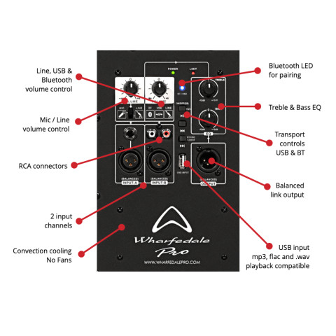 Wharfedale Pro Tourus AX15-MBT ลำโพง PA แอคทีฟแบบพกพา 2-Way ขนาด 15 นิ้ว พร้อมแอมป์ในตัวและระบบ Bi-Amp ให้พลังเสียงดัง เคลียร์ และบาลานซ์ เหมาะทั้งงานแสดงสด งานอีเวนต์ ร้านค้า ห้องประชุม ไปจนถึงปาร์ตี้และใช้งานภายในบ้าน โดยรุ่น MBT รองรับ Bluetooth สำหรับสตรีมเพลงไร้สายคุณภาพสูง และยัง Pairing แบบ TWS (True Wireless Stereo) จับคู่ลำโพงอีกตัวเพื่อทำระบบสเตอริโอได้อย่างง่ายดาย