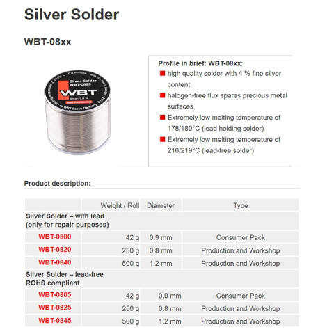 ตะกั่วเงิน WBT 0805 / 0825 3.8% Silver Solder Lead-Free แบบยกม้วน ของแท้ศูนย์ ราคา 8,800.00 บาท