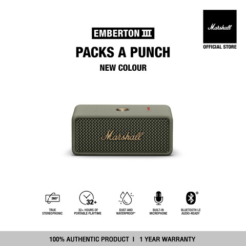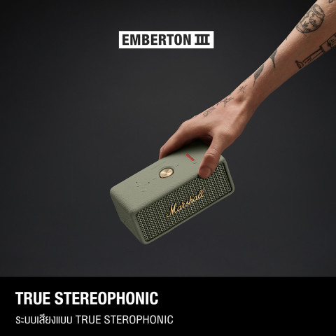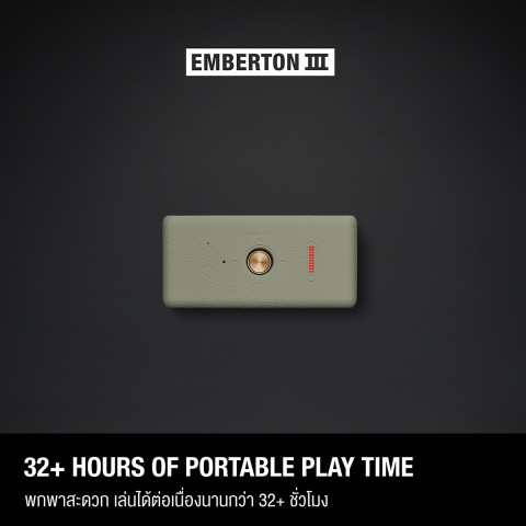 [NEW COLOUR] MARSHALL EMBERTON III SAGE ลำโพงบลูทูธพกพาสีใหม่สุดเท่จาก Marshall ให้เสียงทรงพลังในดีไซน์คลาสสิก พกพาง่าย ใช้งานสะดวก เหมาะทั้งฟังเพลงที่บ้าน ออกทริป หรือแต่งห้องให้มีสไตล์แบบมาร์แชลแท้ ๆ ในเครื่องเดียว