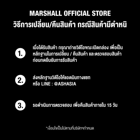 Marshall ของแท้ 100% ซื้อได้อย่างมั่นใจจาก Marshall Official Store (โปรดสังเกต สติกเกอร์ Ash Asia บนกล่องสินค้าเพื่อการันตีของแท้)