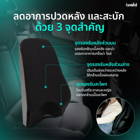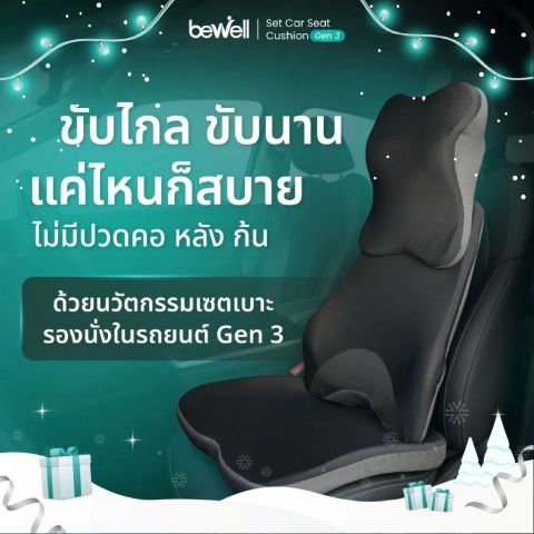 Bewell เซตเบาะรองนั่งในรถยนต์ Gen 3 ครบชุด หมอนรองคอ + เบาะรองหลัง + เบาะรองนั่ง ออกแบบโดยนักกายภาพบำบัดผู้เชี่ยวชาญ เพื่อรองรับสรีระตั้งแต่ศีรษะจรดกระดูกก้นกบ ช่วยปรับท่านั่งให้ถูกหลักสรีรศาสตร์ ลดอาการปวดเมื่อย แม้ขับรถต่อเนื่องยาวนานถึง 10 ชั่วโมง