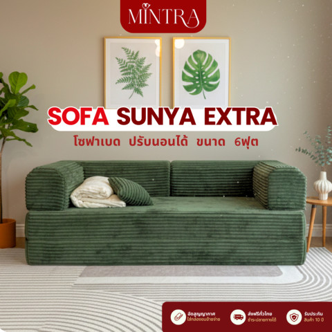 [สอบถามสีก่อนสั่งซื้อ] SOFABED รุ่น Sunya Extra โซฟาเบดปรับนอนได้ ขนาด 6 ฟุต มาพร้อมเมมโมรี่โฟมให้สัมผัสนุ่ม รองรับสรีระดี เหมาะทั้งนั่งพักผ่อนและปรับเป็นที่นอนสำหรับนอนจริง ใช้งานได้คุ้มในห้องนอน คอนโด หรือห้องนั่งเล่น พร้อมโครงเหล็กพยุงรอบด้านเพิ่มความมั่นคงขณะใช้งาน