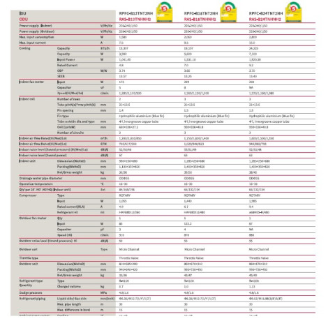 RPFC-B36TNT2NH / RAS-B36TNHMH2: 35,485 BTU (ไฟ 3 เฟส)