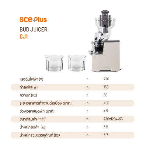 รายละเอียดสินค้า: SCE Plus Bud Juicer รุ่น CJ1 (รับประกัน 2 ปี)