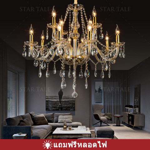 โคมระย้าคริสตัลยุโรป Crystal Light Ceiling Lights เติมบรรยากาศให้บ้านดูหรูหราแบบโรงแรม ด้วยประกายคริสตัลระดับพรีเมียมที่หักเหแสงสวยงาม ช่วยยกระดับห้องนั่งเล่น ห้องนอน ห้องอาหาร หรือโถงทางเดินให้โดดเด่นทันที ทั้งสไตล์โมเดิร์นและยุโรปคลาสสิกในโคมเดียว