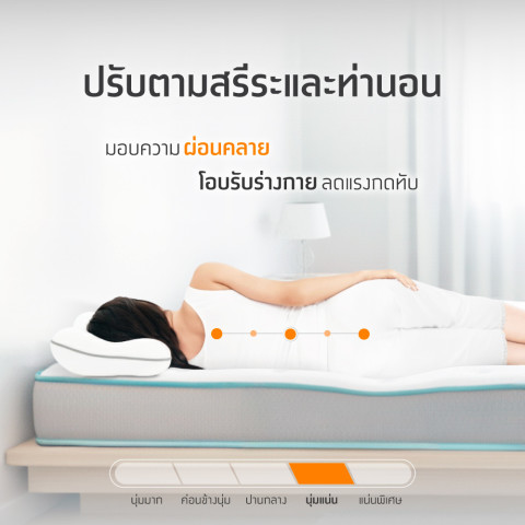 ระดับความนุ่มเด้งปานกลาง ช่วยกระจายน้ำหนัก รองรับสรีระเพื่อการหลับที่มีคุณภาพ