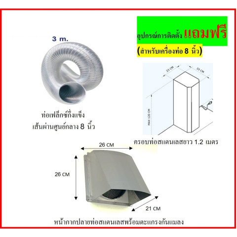 ขนาดท่อระบายอากาศ: 8” ROUND