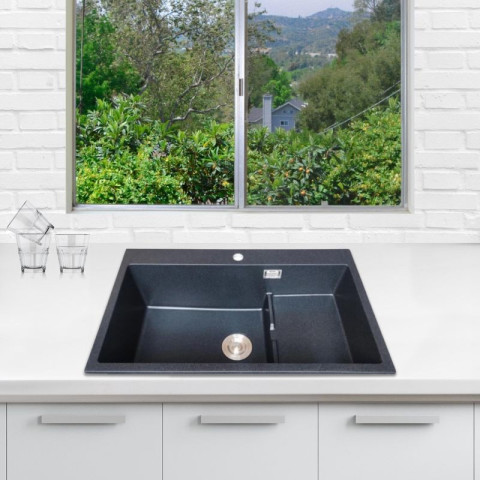 ตัวซิงค์ผลิตจากวัสดุคุณภาพสูง ควอตซ์ 80% ผสมเรซิน 20% ให้ผิวสัมผัสแบบแกรนิตที่ดูพรีเมียม แข็งแรง ทนรอยขีดข่วนและการกัดกร่อน รองรับการใช้งานหนัก ทนความร้อนและอุณหภูมิสูงได้ดี พร้อมดูแลรักษาง่าย ใช้แล้วครัวดูสะอาดอยู่เสมอ