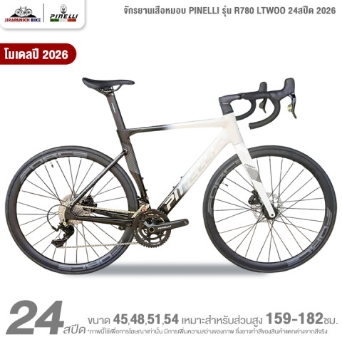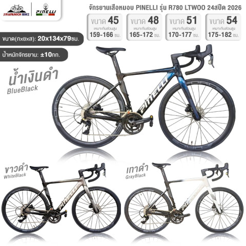 จักรยานเสือหมอบ PINELLI รุ่น R780 LTWOO 24สปีด 2026 (เกียร์ LTWOO RX, ตะเกียบ CARBON) ในสี เทาดำ (GrayBlack) ไซซ์ 54 เหมาะสำหรับส่วนสูงประมาณ 175–182 ซม. คือเสือหมอบ “Top Alloy” ที่ให้ฟีลลิ่งและหน้าตาแบบรถโปร ในงบที่คุ้มมาก ด้วยเฟรมทรงแอโรลบรอยเชื่อมเนียน ๆ พร้อมตะเกียบคาร์บอนเต็มและชุดเกียร์ L-TWOO RX 2x12 ครบทั้งความเร็ว ความนิ่ง และความมั่นใจในการเบรก